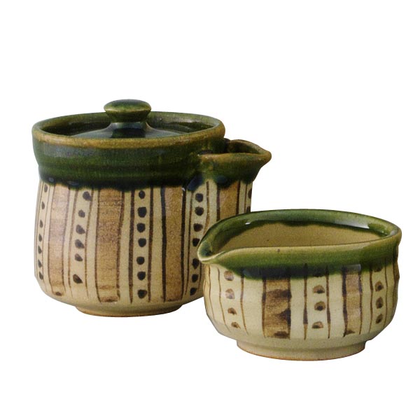 Gyokuro Set Oribe mit Yuzamashi, Kännchen zu 160ml und 5 Bechern,ø6,8 Höhe 4,8cm