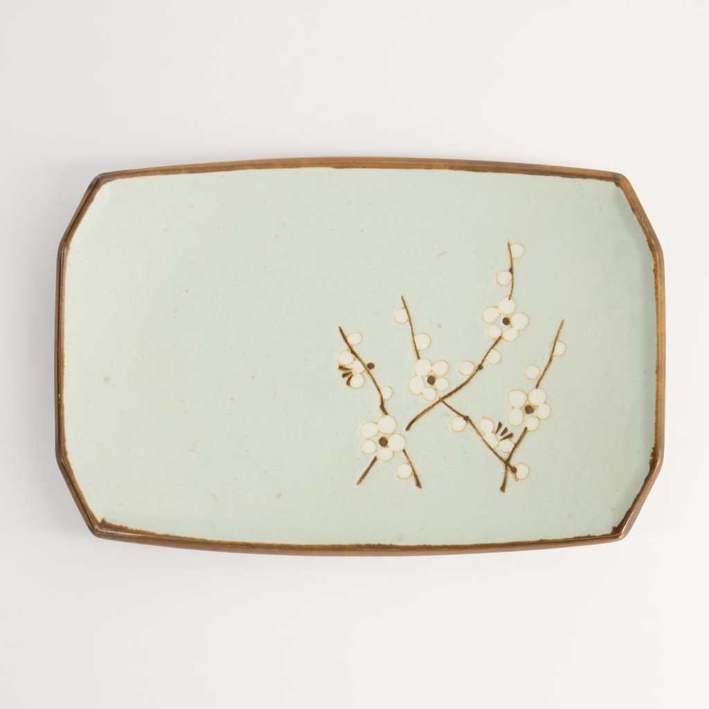 Produktinformationen "Japanischer Sushiteller "Soshun Türkis" – Porzellan mit Pflaumendekor"