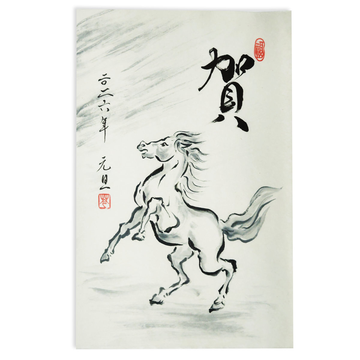 Produktinformationen "Glückwunschkarte mit handgemalter Kalligraphie zum Jahr des Pferdes 2026 mit Sumi-e"